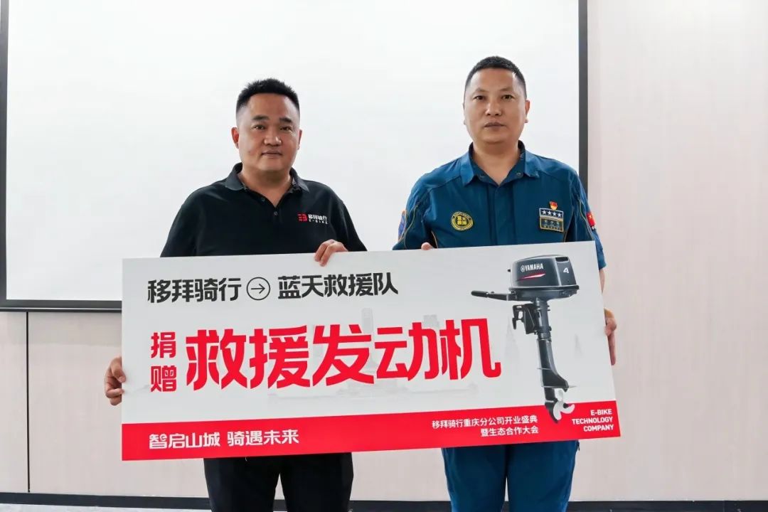 8月24日,移拜骑行逢重庆分公司正式开业之际,向重庆蓝天救援队郑重捐赠高性能救援发动机,开启品牌在重庆的社会责任新篇章。