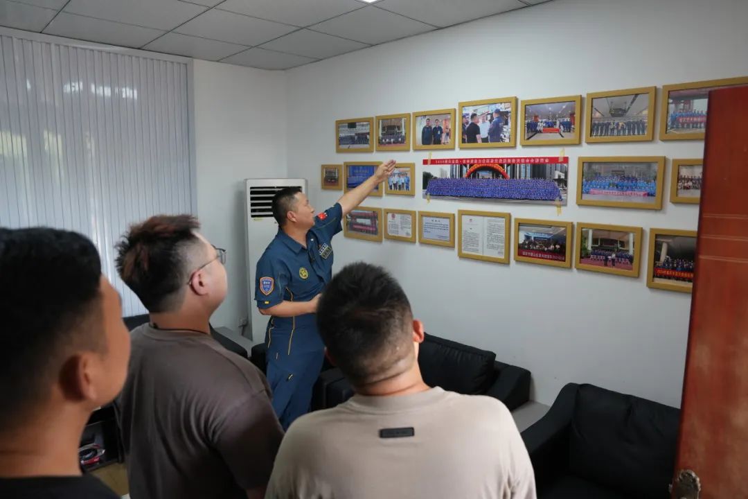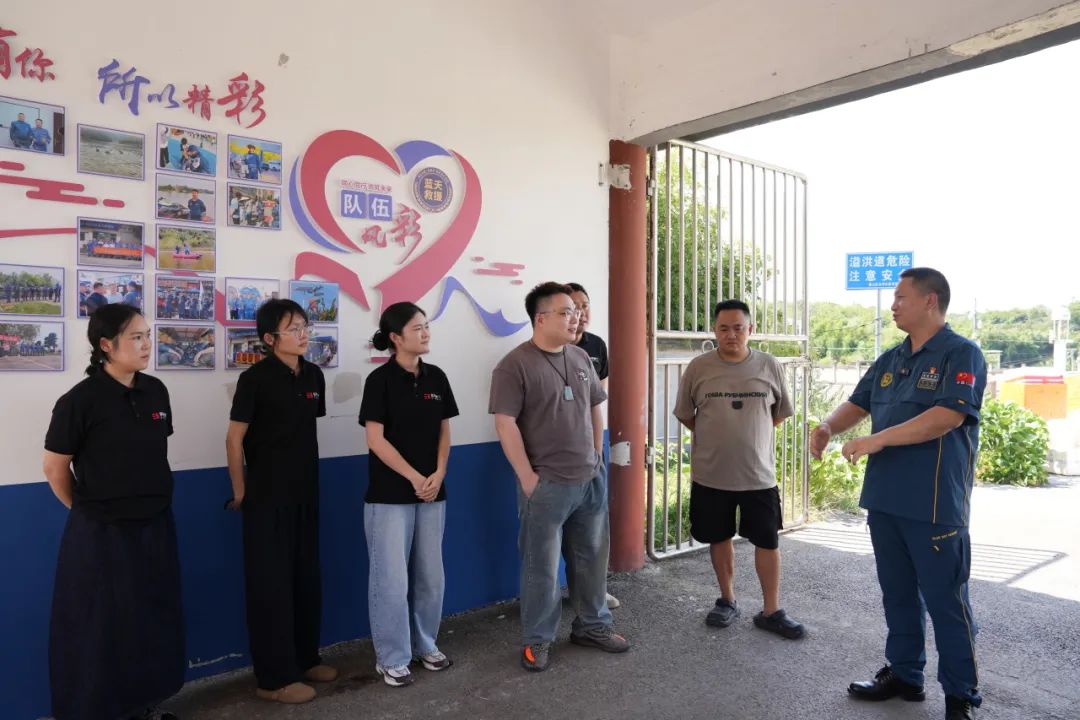 抵达救援队基地后,在蓝天救援队刘均队长的带领和讲解下,众人参观了救援队装备库、模拟训练区与荣誉展示墙,了解到许多过往的救援事迹。交流尾声,队员代表还现场普及了基础救援知识,如伤口止血的正确手法,到地震、暴雨等灾害的避险要点。